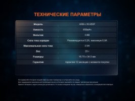 - Перезаряжаемый аккумулятор емкостью 950 мАч