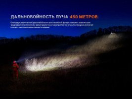 - High (высокий) — 1200 люмен — 241 метр — 8 часов — 14 512 кандел;