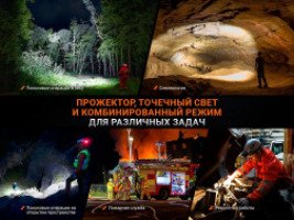 - компактный фонарь для спелеологии, обслуживания сложной техники, поисковых и спасательных операций, медицинской помощи и других активных задач на открытом воздухе;