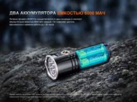 - аккумуляторы — Fenix ARB-L21-6000 емкостью 6000 мАч х2 (размер 21700);