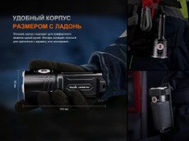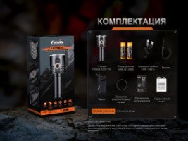 - комплектация — фонарь LR35R Pro, 2 аккумулятора Fenix ARB-L21-6000, кабель Type-C, запасное уплотнительное кольцо, чехол, руководство пользователя, гарантийный талон;
