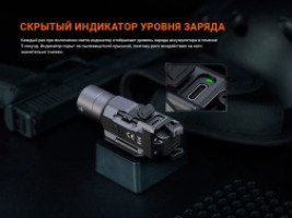 Для работы тактического фонаря GL19R V2.0 используется входящий в комплект аккумулятор ARB-L18-1100. Скрытый универсальный порт Type-C позволяет зарядить прибор за 2 часа. Уровень заряда аккумулятора можно определить с помощью индикатора, который загорается на 3 секунды каждый раз при включении света.