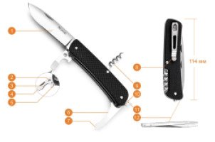 Жесткой фиксации инструментов, включая нож, в данной модели не предусмотрено. Все инструменты открываются и удерживаются при помощи механизма Slip Joint, который предусматривает фиксацию за счет трения.