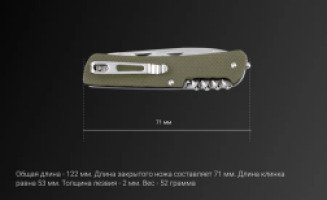 - вес ножа равен 52 грамма.
