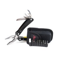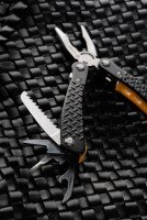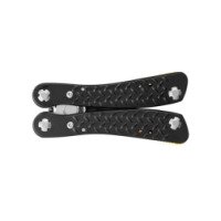 Рукоятки выполнены в черном цвете. Рельефное покрытие улучшает сцепление с рукой — мультитул не выскользнет при использовании, даже если руки мокрые или грязные. Изогнутая форма рукояток и желтые пластиковые вставки для упора большого пальца делают работу с инструментом комфортной и точной.