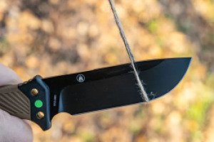Модель G8012V2-DY продумана с учетом специфики ножей для использования на природе. Лезвие изготовлено из высокоуглеродистой стали 8CR13, которая устойчива к появлению коррозионного налета при длительном воздействии влаги и обеспечивает качественный рез. Твердость стали достигает отметки 58 HRC — оптимальное значение, при котором клинок легко затачивается и надолго сохраняет остроту режущей кромки. Длина клинка составляет 11.3 сантиметра, а толщина — 5 миллиметров, что гарантирует повышенную прочность ножа и исключает вероятность появления сколов. Поверхность лезвия имеет черное матовое покрытие, которое отличается стойкостью и является отличительной чертой модели.