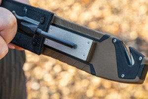 - поставляется в комплекте с ножнами со встроенным огнивом, точилкой и стропорезом;