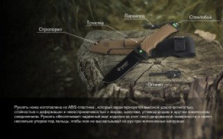 Функционал модели дополнен компактным стеклобоем, который размещен в задней части рукояти, а также коротким паракордом в качестве темляка. Паракорд отличается высокой прочностью и расширяет возможности транспортировки изделия за счет крепления темляка к поясу или рюкзаку.