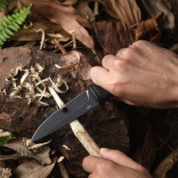 Форма клинка Drop Point отличается прочным острием и плавной линией обуха, что делает нож универсальным и удобным как для реза, так и для прокалывания. Такая геометрия повышает контроль над ножом и снижает риск случайного повреждения при работе. Покрытие Blackwash защищает сталь от коррозии и скрывает следы эксплуатации.