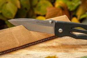 Лезвие модели выполнено из нержавеющей стали 440 (имеет высокую стойкость к коррозии и отличную твердость, хорошо держит заточку, при этом относительно дешева в производстве).