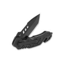 Форма клинка — Tanto, универсальная и подходящая как для точных работ, так и для силовых задач. Общая длина ножа составляет 204 мм, длина клинка — 81 мм, длина рукояти — 123 мм, а толщина клинка — 2,8 мм. Вес ножа — 140 г, что делает его комфортным для ежедневного ношения, не создавая лишней нагрузки. Клинок имеет черное матовое покрытие, устойчивое к царапинам и бликам.