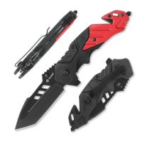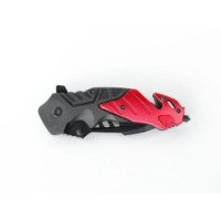 Рукоять изготовлена из комбинации полипропилена, армированного стекловолокном и алюминия, благодаря чему она легкая, прочная и устойчивая к механическим повреждениям. Это синтетический материал, который обладает рядом полезных свойств, таких как высокая прочность, устойчивость к износу и воздействию химических веществ, а также легкий вес. Черно-красная расцветка придает ножу стильный узнаваемый внешний вид.