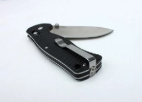 Рукоятка изготовлена из прочного современного материала G10, обладающего отличными характеристиками: высокой термостойкостью и сопротивляемостью химическому воздействию. По бокам рукоятки расположены рифленые накладки, благодаря чему нож не скользит и удобно «сидит» в руке. Также на рукоятке предусмотрена металлическая прижимная клипса, позволяющая разместить нож на ремне при транспортировке.