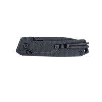 Рукоять изготовлена из микарты — прочного композитного материала с приятной текстурой и хорошим сцеплением даже во влажной ладони. Внутренние стальные лайнеры из нержавеющей стали 420 усиливают конструкцию без увеличения веса. Осевой узел с керамическим подшипником обеспечивает плавное и быстрое открытие, а лайнерный замок надежно фиксирует клинок при работе.
