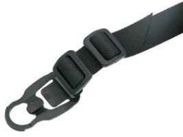 Крепление к оружию через антабку стальным высокопрочным карабином форм фактора MASH hook и через универсальный переходник к прикладу.
