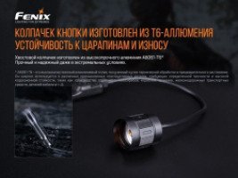 Крепится устройство очень просто за счет липучки-наклейки и стяжек. Эти элементы входят в комплектацию аксессуара. Пульт также можно установить с помощью специального крепежа Fenix ALG-05. Он продается отдельно. Подключение к фонарю осуществляется простой заменой хвостовой части фонаря на адаптер с кабелем. Материал хвостовой части – алюминий 6061-T6, прошедший закалку анодированием 3 степени. Он устойчив к коррозии, царапинам, ударам, легкий и очень прочный. Кнопка станет надежным помощником охотникам, работникам спецслужб, игрокам в страйкбол.