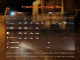 - Low — 30 люмен — 23 метра — 130 кандел — 12 часов;