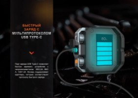 Фонарь Fenix CL28R работает от встроенной батареи, которая состоит из двух аккумуляторов емкостью по 5000 мАч. Они отличаются стойкостью к воздействию высоких и низких температур и наделяют модель завидной автономностью, достигающей 45 дней работы в минимальном режиме. Для зарядки аккумуляторов предназначен порт USB Type-C, к которому подсоединяется зарядный кабель, входящий в базовый комплект. Время, которое требуется для полной зарядки, составляет 4 часа.