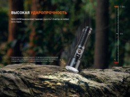 Fenix LD45R — надежный и долговечный светодиодный фонарь, который позволит вам чувствовать себя уверенно в любых условиях на природе — в лесу, в горах или при исследовании пещер. Он обладает оптимальными размерами 155.3х44.5х32 мм, которые позволяют удобно брать его с собой в поход.