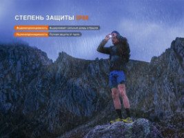Аккумуляторный налобный фонарь обладает защитой от воды и пыли IP66. Это значение показывает, что устройство полностью защищено от попадания пыли внутрь корпуса и может использоваться во время дождя. Ударопрочность Fenix HL12R V2.0 составляет 1.5 метра. Передняя часть фонаря выполнена из прочного алюминиевого сплава.