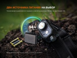 Фонарь Fenix HL45R может работать от двух различных источников питания — аккумулятора ARB-LP1900 емкостью 1900 мАч или трех батареек ААА. Батарейки ААА можно приобрести в любом магазине и продолжать использовать фонарь, даже если нет возможности зарядить аккумулятор.