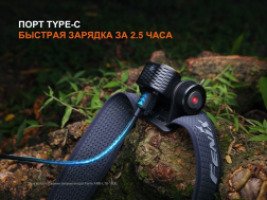 Питание бегового фонаря обеспечивает аккумулятор ARB-L18-1600 формата 18350 емкостью 1600 мАч. Зарядка производится через разъем USB Type-C и занимает около 2,5 часов. Максимальное время работы устройства достигает 141 часа 10 минут.