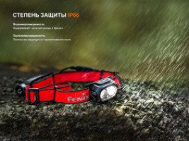 Fenix HP12R‑T обладает степенью защиты IP66 — он устойчив к пыли, сильным дождям и механическим нагрузкам. Конструкция выдерживает активное использование в жестких условиях, включая падение с высоты 2 метра. Вес фонаря вместе с аккумулятором составляет 199 г, размеры головного блока — 61×37×28 мм, аккумуляторного — 92×35×36 мм. Перфорированное оголовье со светоотражающими вставками обеспечивает комфорт при ношении и безопасность в темное время суток.