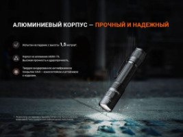 От других моделей тактический фонарь Fenix PD32R отличается компактными размерами и легким весом. Вес модели составляет всего 136 г, а размеры – 129,4 х 25,4 х 23,6 мм. Фонарь с защитой IP68 переносит погружение в воду и защищен от частичек пыли. Fenix PD32R выдерживает падение с высоты до 1,5 метров, что подтверждает его надежность и устойчивость к механическим повреждениям.