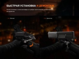 Велофара Fenix BC22R, аккумулятор ARB-L18-3400, крепление для руля, крепление адаптера, кабель USB Type-C, запасное уплотнительное кольцо, руководство пользователя, гарантийный талон