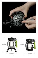 Портативный, компактный, легко переносится, имеет два разных способа крепления фонаря, а также позволяет использовать его на штативе на столе.