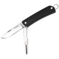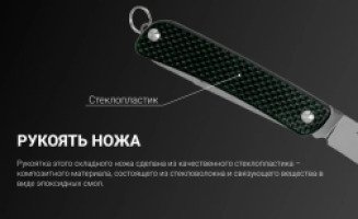 Рукоятка этого складного ножа сделана из качественного стеклопластика – композитного материала, состоящего из стекловолокна и связующего вещества в виде эпоксидных смол. Цвет рукоятки – коричневый, зеленый или черный. Обе накладки сделаны текстурированными и не скользят в руках. Прижимной клипсы в этой модели нет, так как нож предлагается носить как брелок на цепочке. Для этого в торце его ручки есть небольшое стальное кольцо. В сложенном виде Ruike S22 имеет длину 71 мм. Его вес – 43 грамма.