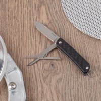 Ruike S22 ориентирован на очень широкий круг задач. Это складной нож небольшого размера, который дополнен кольцом для ношения на цепочке и миниатюрной версией ножниц. В пользу выбора именно этой модели говорит как небольшой вес и габариты ножа, так и его долговечность за счет качественных материалов, из которых сделаны все его детали. Рабочие инструменты этого ножа изготовлены из шведской нержавеющей стали, известной под названием 12С27. В ней большой процент хрома, а также некоторое количество молибдена и кремния. Такой состав делает сплав отлично сбалансированным. К тому же, при температуре -80 °C сталь закалена до твердости 57-59 HRC. Высокая твердость металла делает нож способным хорошо сохранять остроту заточки в процессе эксплуатации.