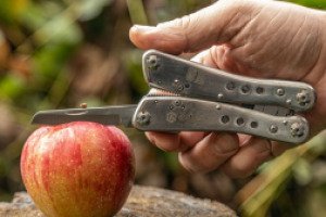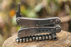 Центральный элемент мультитула — подпружиненные плоскогубцы. Они автоматически возвращаются в исходное положение после сжатия, что упрощает использование и снижает усталость рук во время работы с инструментом. Плоскогубцы отлично справляются с удерживанием мелких деталей, перекусыванием проволоки и монтажом крепежных элементов. В набор бит входят 5 шестигранников, 3 плоских отвертки и 3 крестовых. Насадки крепятся к держателю с помощью магнитного переходника, поэтому биты не болтаются и не выпадают во время работы.