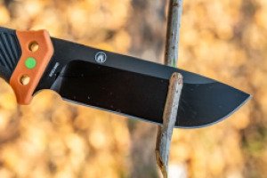 Модель G8012V2-OR продумана с учетом специфики ножей для использования на природе. Лезвие изготовлено из высокоуглеродистой стали 8CR13, которая устойчива к появлению коррозионного налета при длительном воздействии влаги и обеспечивает качественный рез. Твердость стали достигает отметки 58 HRC — оптимальное значение, при котором клинок легко затачивается и надолго сохраняет остроту режущей кромки. Длина клинка составляет 11.3 сантиметра, а толщина — 5 миллиметров, что гарантирует повышенную прочность ножа и исключает вероятность появления сколов. Поверхность лезвия имеет черное матовое покрытие, которое отличается стойкостью и является отличительной чертой модели.