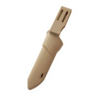 В изготовлении рукоятки применен материал PP+TRP. Этот материал представляет собой сочетание синтетического полипропилена и прорезиненного покрытия. Сочетание этих материалов известны своей износостойкостью и хорошим сопротивлением к воздействию температур. Рукоятка имеет ребристую поверхность, благодаря чему она не скользит в руке, даже при длительном применении. В рукоятку встроена выемка для темляка и добавлены насечки перед частью с лезвием для удобного расположения большого пальца. Ножны также изготовлены из полипропилена, только без добавления резины.