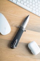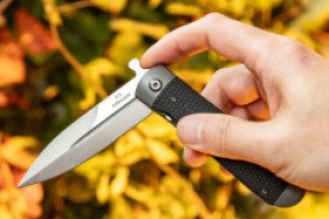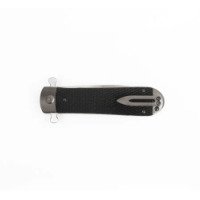 Нож Adimanti by Ganzo Samson – это компактный флиппер, чей клинок надежно запирается в открытом и закрытом положениях. Рукоять инструмента имеет стальную основу с двумя текстурированными накладками из G10 – прочного стеклотекстолита, который высоко ценится за свою стойкость к ударам и механическим повреждениям. В отличие от дешевого пластика, на стеклотекстолите не образовываются микротрещины после продолжительного воздействия низких температур. Материал также не деформируется в случае долгого нахождения под прямыми лучами солнца, не выцветает и не скользит в ладони.