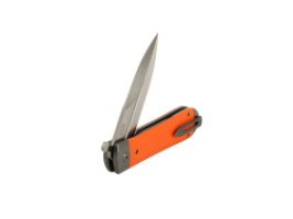 Клинок имеет форму Spear-Point с фальшлезвием со стороны обуха. С такой копьевидной формой легко выполнять колющую работу, когда нужно что-то подковырнуть, наколоть или тонко надрезать. С базовым задачами клинок эффективно справляется за счет своей длины в 94 миллиметра и толщины, составляющей 3.5 миллиметра.
