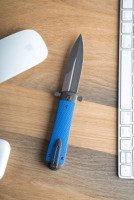 Нож Adimanti by Ganzo Samson – это компактный флиппер, чей клинок надежно запирается в открытом и закрытом положениях. Рукоять инструмента имеет стальную основу с двумя текстурированными накладками из G10 – прочного стеклотекстолита, который высоко ценится за свою стойкость к ударам и механическим повреждениям. В отличие от дешевого пластика, на стеклотекстолите не образовываются микротрещины после продолжительного воздействия низких температур. Материал также не деформируется в случае долгого нахождения под прямыми лучами солнца, не выцветает и не скользит в ладони.