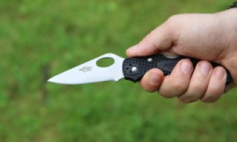 Лезвие Firebird F759M изготавливается из стали 440С, о чем имеется соответствующая отметка прямо на клинке. Длина лезвия равна 7,5 см, а заточено оно гладко. Таким ножом можно и продукты резать, и почти любые непродовольственные товары. Шлифовка для Firebird F759M выбрана вполне стандартная — сатинирование. Но клинок, тем не менее, выглядит очень оригинально: у него поднятая вверх линия обуха, а вместо шпенька сделано довольно крупное овальное отверстие. За счет формы клинка, это отверстие будет выше линии рукоятки, когда нож сложен.