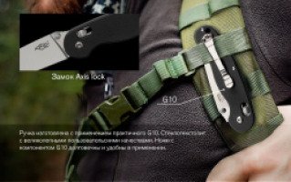 Цвета модели – черный, камуфляж и серый. Создатели позаботились о вкусе ценителей темной гаммы, слегка разбавив ее оригинальной камуфляжной расцветкой. Ручка изготовлена с применением практичного G10. Стеклотекстолит с великолепными пользовательскими качествами: прочный, износостойкий, термостойкий, хорошо поддается окрашиванию. С таким материалом в составе нож обретает защищенность от воздействий внешней среды, становясь по-настоящему безотказным в любой ситуации и условиях. Ножи с компонентом G10 долговечны и удобны в применении. Слегка шероховатая поверхность ручки обеспечивает более комфортный захват – нож надежно ложится в ладонь, не скользит и не смещается.