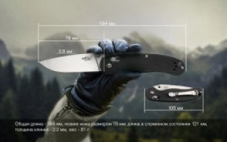 Вес новинки 81 грамм, общая длина составляет 18,4 сантиметра. Длина лезвия 7,8 сантиметра, толщина клинка 2,2 миллиметра. В качестве механизма безопасности используется замок Axis lock. Помогает удерживать лезвие как в открытом, так и в закрытом состоянии. Нож дополнен металлической клипсой, прочной и жесткой, изготовленной из закаленной нержавеющей стали. Позволяет зафиксировать нож на одежде либо на снаряжении. Клинок имеет ровную матовую поверхность, устойчивую к возникновению царапин и потертостей.