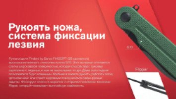 Ножевой механизм Flipper способствует безопасному и лёгкому открытию и закрытию клинка. Открывать нож можно одной рукой.