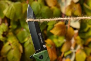 Черное лезвие выполнено из популярной у производителей ножей нержавеющей стали 440. Данная марка заслужила доверие, благодаря своей высокой твердости и малой подверженности коррозии, а также доступной стоимости производства.