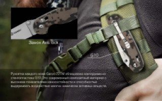 Рукоятка каждого ножа Ganzo 727M облицована накладками из стеклопластика G10. Это современный композитный материал с высокими показателями износостойкости и способностью выдерживать воздействие многих химически активных веществ. Для выбора доступны четыре цветовых варианта рукоятки: черный, оранжевый, болотно-зеленый и камуфляжный, Вне зависимости от цвета, поверхность любой рукоятки текстурированная, чтобы его можно было крепче держать в руках. Помимо того, производители предусмотрительно разместили на рукоятке клипсу для крепления ножа на ремень и отверстие для продевания темляка.