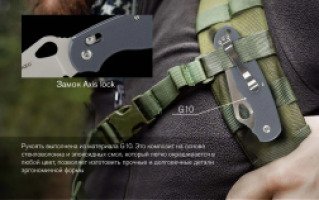 В конструкции ножа использован замок Axis Lock, в основе которого находится подпружиненный штифт. Замок удерживает клинок в открытом и закрытом положениях, чтобы предупредить открывание инструмента из-за неосторожного движения руки. Открытие ножа происходит при помощи каплевидного отверстия в лезвии, куда продевается большой палец.