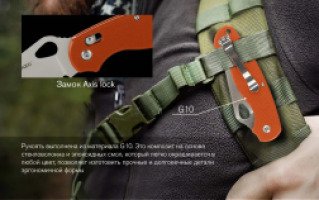 Фиксируется клинок при помощи ножевого замка Axis Lock. Это очень прочный штифтовый фиксатор, который выдерживает огромные нагрузки. Но чтобы надолго сохранить работоспособность этого замка, за ним требуется хороший уход, поскольку забившаяся грязь может помешать движению штифта.