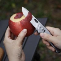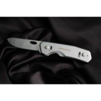 В составе складного ножа – нержавеющая сталь марок 420 и 5Cr15. Также сюда вошёл алюминиевый сплав. Такие компоненты в составе модели гарантируют ей прочность, устойчивость к коррозии и к механическим повреждениям. По размерам нож невелик, его габариты составляют 105x28x16 миллиметров, а длина клинка достигает 74 миллиметров. Весит удобный инструмент 90,5 грамма. Такие миниатюрные габариты делают складной нож хорошим вариантом не только для туристической деятельности, но и для повседневного ношения.