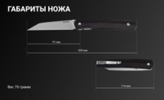 - полная длина ножа в открытом положении — 20,5 см, в закрытом — 11,4 см;