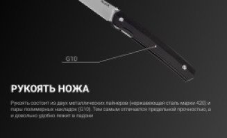 - рукоять ножа состоит из нержавеющей стали марки 420 и полимерных накладок из G10;