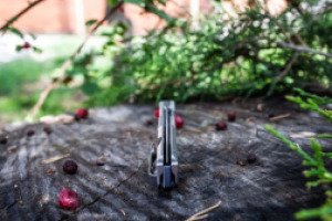 Длина клинка в модели Ruike P108-SF равна 88 мм – довольно стандартное для туристических ножей значение. Толщина клинка Ruike P108-SF относительно большая – 3,1 мм, что дает ему возможность нормально выдерживать высокие нагрузки при работе с деревом, тканью, мясом или другими твердыми материалами. Нож имеет гладко заточенную кромку. Поверхность лезвия сохранила естественный серый цвет стали, но является практически матовой за счет особой шлифовки, выполненной в технике Brushed.
